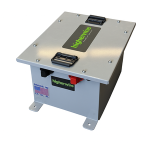 Higher Wire has developed a line of USA-made brand-new drop-in lithium iron phosphate batteries to replace the existing lead acid system. Weighing only 550 lb for 31.1 kWh of power, our energy storage system can be swapped in as little as a few hours using the existing Anderson connectors and requiring only one additional connection for the included communication cable to the inverters. With much higher efficiency and full 100% depth of discharge, one of our batteries is equivalent to the two lead acid batteries originally installed, yet it has a far longer life and weighs far less.